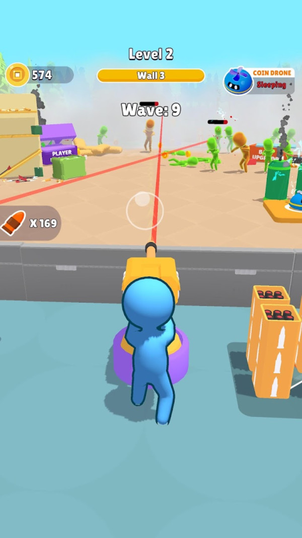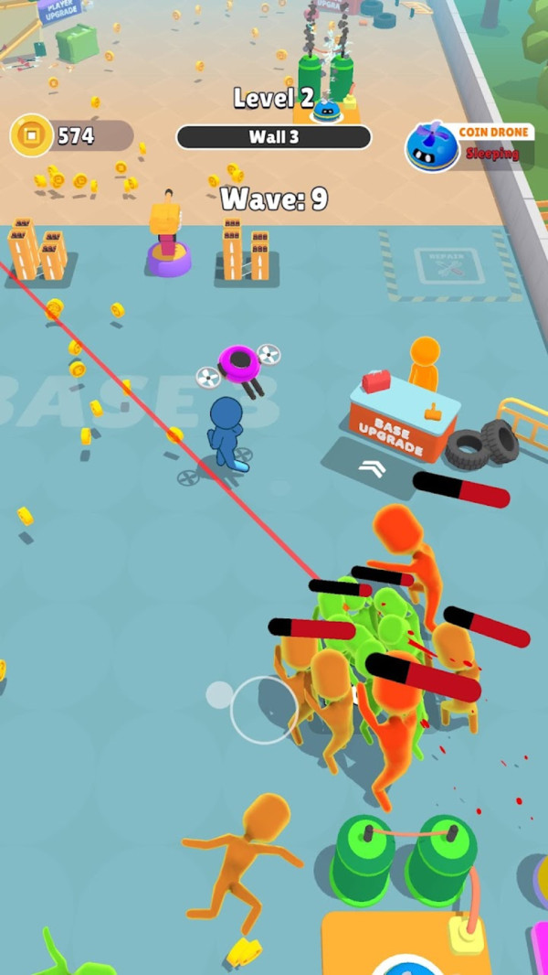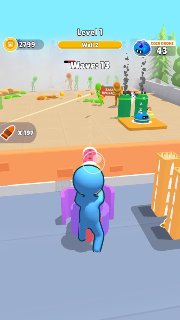 游戏的场地分为了几个防御区域,玩家要借助汽车、建筑物等掩护建立驻守地,根据自己的财产,召集不同兵种、武器的士兵前来迎战一波接一波、从四面八方而来的丧尸。 召集出来的士兵可按需求变动位置,并且不同级别的士兵都会拥有一定的圈状射程范围,根据使用武器种类而决定射程,当僵尸进入范围后就会开始自动攻击了。 除了根据任务杀丧尸,玩家还可以逐步升级自己的士兵以及炸弹等道具,以获得更强的战力。